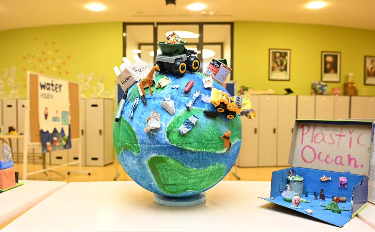 Сначала Лейла Алиева посмотрела выставку работ школьников, отражающую их взгляды на экологические проблемы, пути их решения и охрану природы.