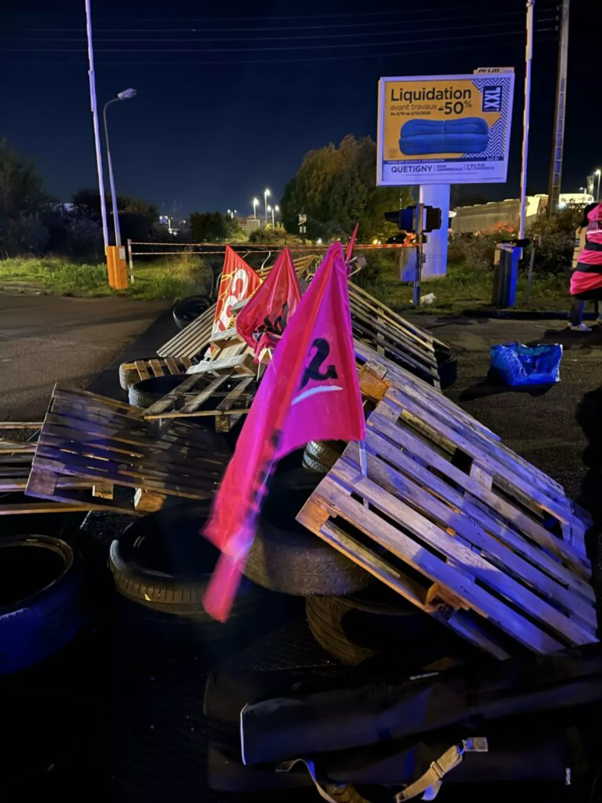 «Активисты из профсоюза Solidaires, CGT, FSU, к которым присоединилось движение «Заблокируем всё», препятствуют въезду и выезду грузовиков», — отмечает издание.