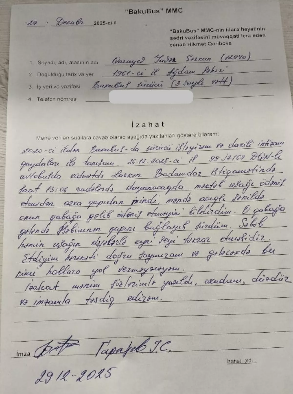 Водителя BakuBus наказали за чёрствость к ребёнку ФОТО