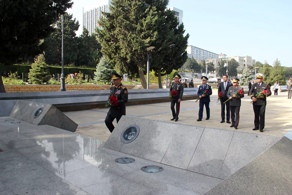 Под аккомпанемент военного оркестра здесь был исполнен Государственный гимн Азербайджанской Республики, минутой молчания была почтена память шехидов, возложены цветы на их могилы.