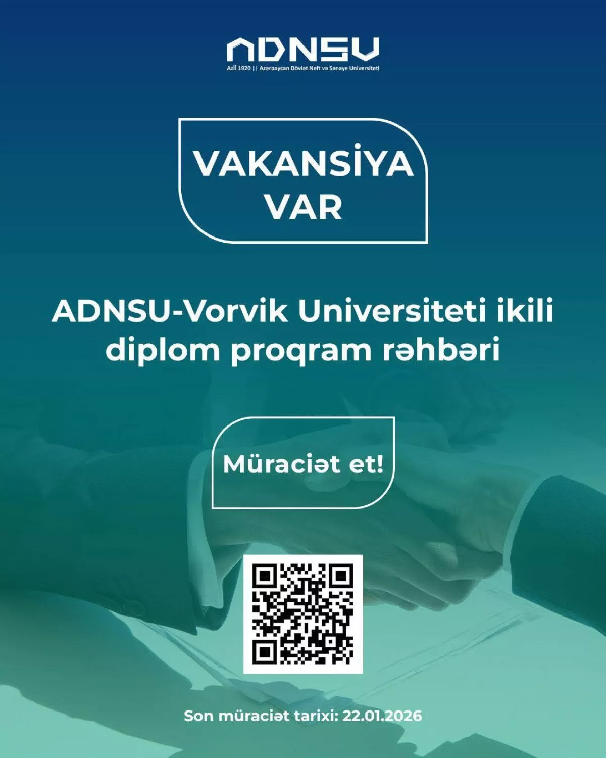 Как сообщает Caliber.Az, это должность руководителя программы двойных дипломов в рамках сотрудничества между ADNSU и Университетом Уорик (Великобритания).
