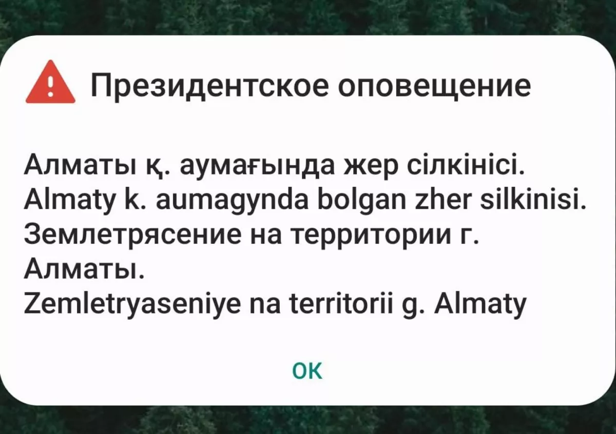 Сообщается, что в Алматы прозвучали сирены, почти сразу на телефоны жителей стали приходить уведомления о сейсмоактивности, а в соцсетях появились десятки сообщений алматинцев с рассказами о том, как они ощутили землетрясение в разных районах города.