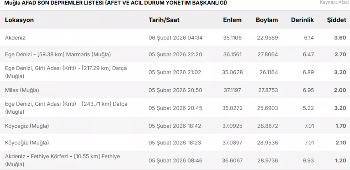 По данным сейсмологических служб AFAD и Обсерватории Кандилли, в 04:34 по местному времени подземные толчки магнитудой 3,6 произошли в районе Бодрума.