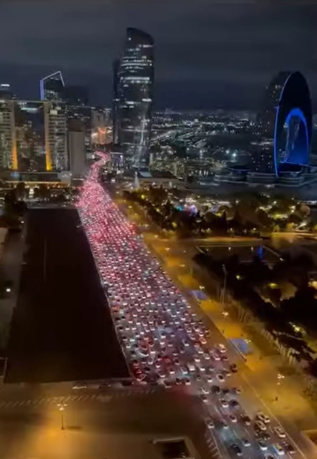 В социальных сетях граждане часто делятся видеороликами, на которых запечатлена вереница машин, железным потоком поглотившая проспект Нефтяников на участке, проходящем по площади Азадлыг и далее к Морскому вокзалу и Port Baku.
