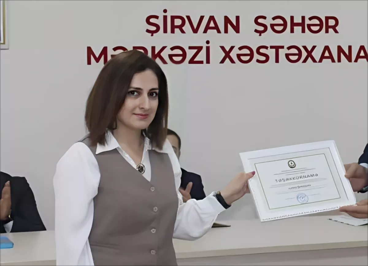 Отмечается, что Ганбаева работает в отделе по связям с общественностью Ширванской центральной городской больницы.