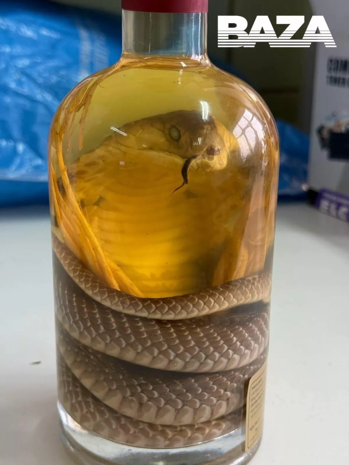 Бутылку обнаружили барнаульские таможенники при досмотре её чемодана. На ёмкости красовалась надпись «Змеиное вино».
